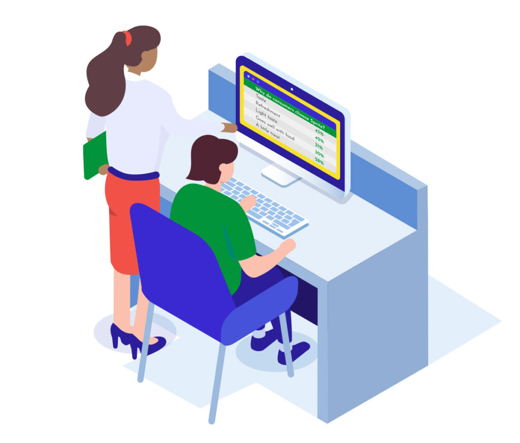 Example – You could try to write out a description of the above illustration, but it’s MUCH easier to draw it (stick figures are absolutely fine – the important thing is that your designer understands what you mean). The sketch on the left clearly explained what needed to be included in the illustration. The final version is on the right.