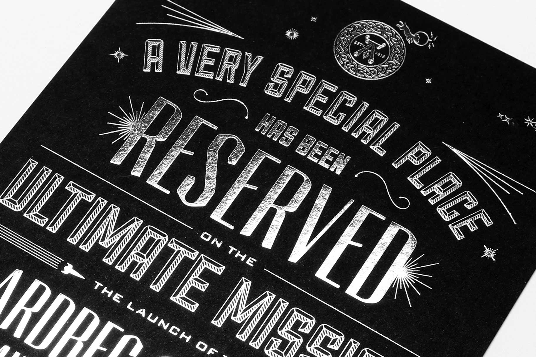 Putting on both our Designer and Copywriters’ hats, we worked with our client to create a witty printed piece with a vintage space travel theme. Elements of outer-space, stars and even the Ardbeg mascot — Shorty the dog — were incorporated.