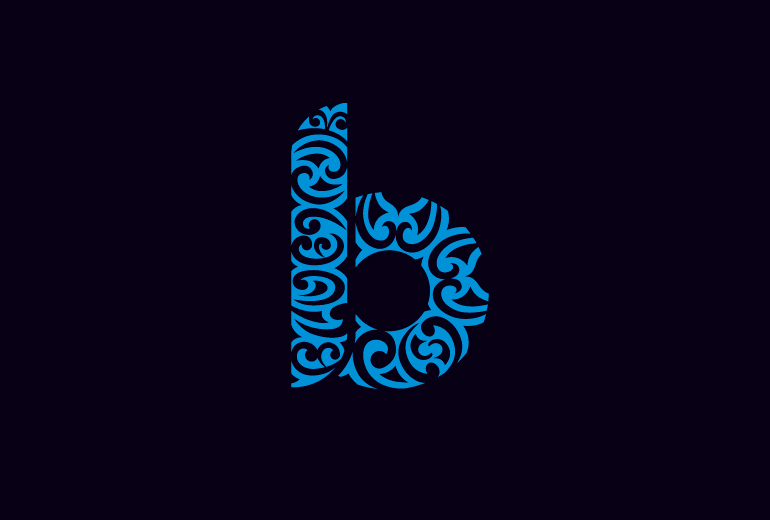 We investigated a number of ways of incorporating the ‘ink’ metaphor. The design chosen hides the name of the client within the ‘b’ shape – a secret element that only a few see immediately.
