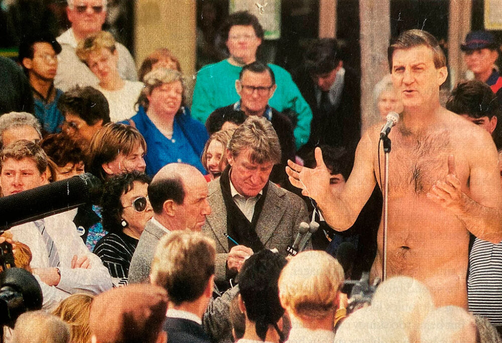 I’ve kept this magazine article since 1993, and now I know why. On the cover, Jeff Kennett (the Victorian Premier at the time) stood naked, addressing a crowd of people. My eyes were telling me one thing. My brain was telling me it couldn’t be true.